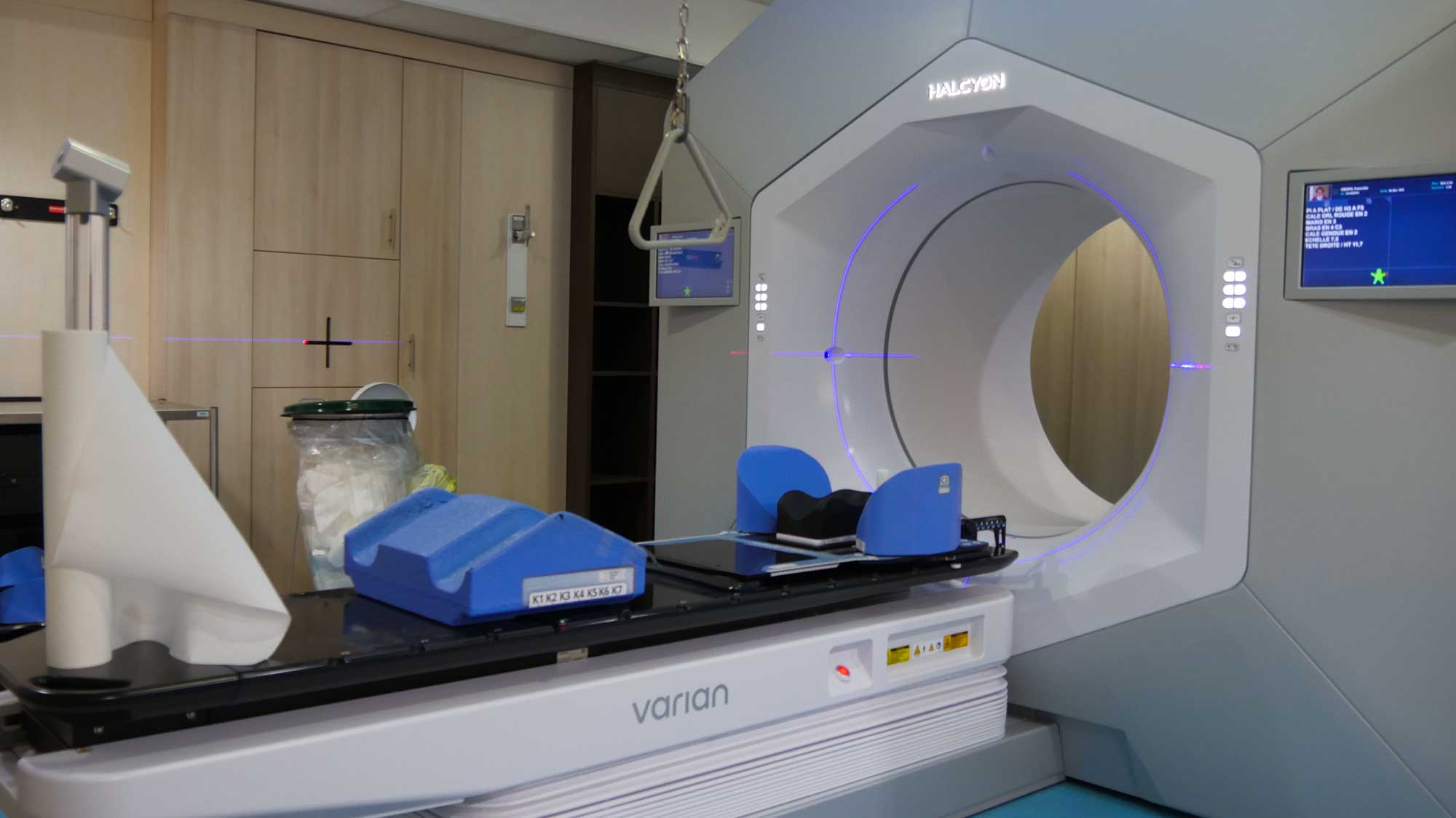 L’accélérateur de particules HALCYON est un équipement de pointe utilisé dans le traitement du cancer. Il est conçu pour délivrer des rayonnements de haute énergie à des zones spécifiques du corps pour détruire les cellules cancéreuses tout en préservant les tissus sains environnants.